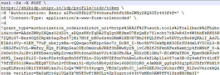 Esempio di request utilizzando l'Auth Code:
