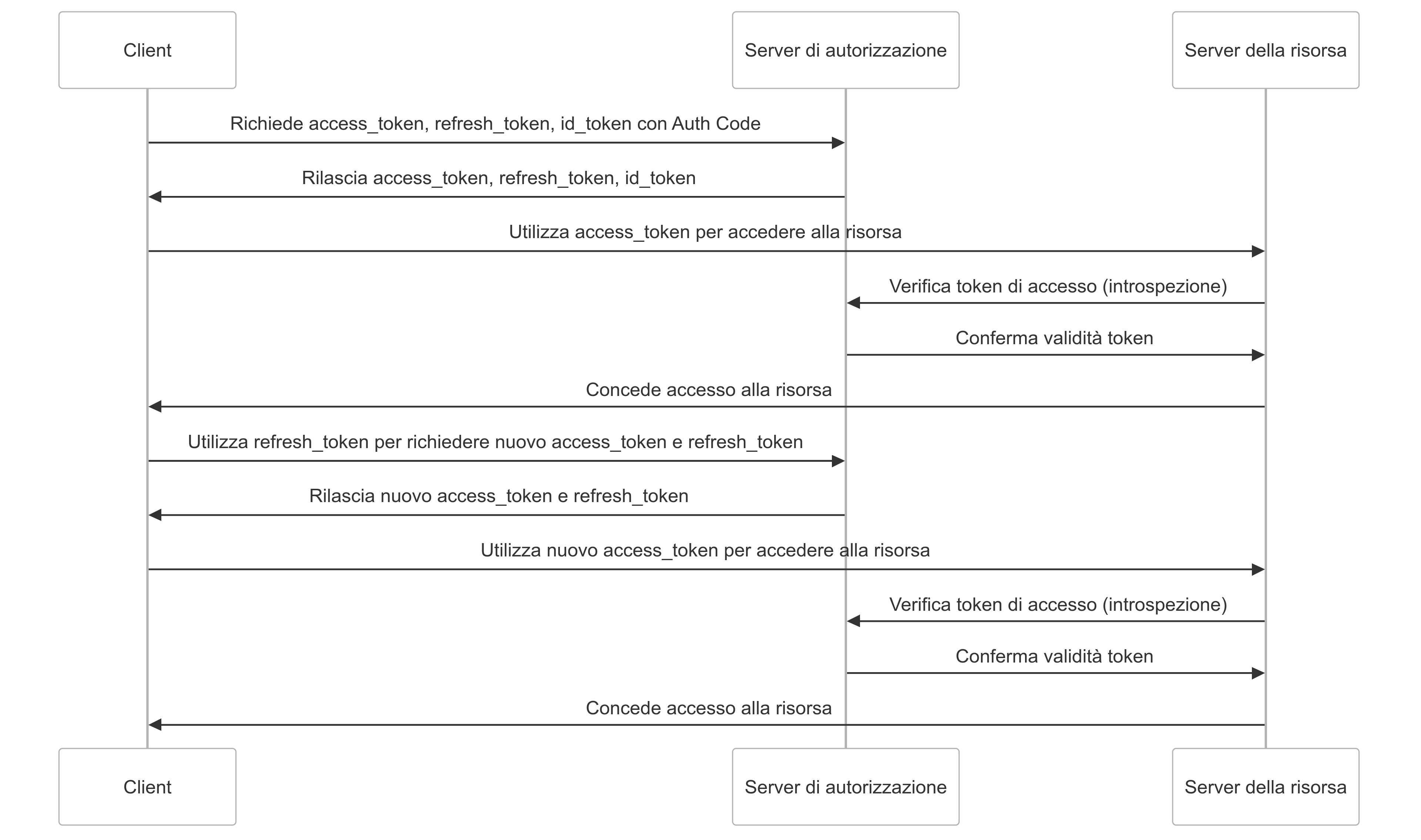 - Accesso alle Risorse: L'applicazione client utilizza il token di accesso per fare richieste al server delle risorse. Il server delle risorse verifica il token e, se valido, concede l'accesso alle risorse richieste.