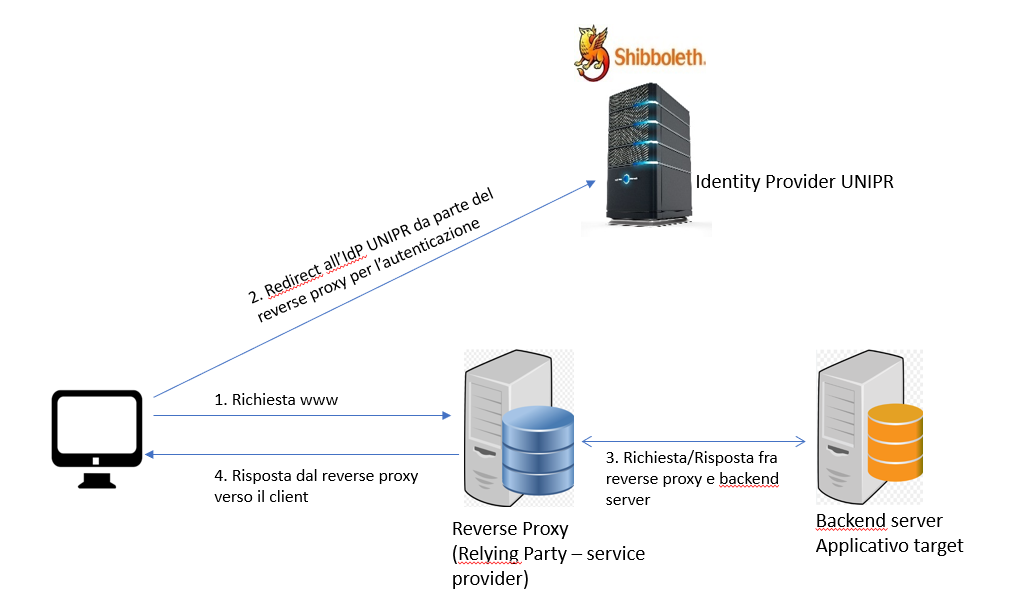 Il servizio di autenticazione basato su protocollo OIDC (OpenID Connect via OAuth2) servito via reverse proxy è riservato esclusivamente ai Relying Party UNIPR (su dominio unipr.it). In vista della disattivazione del protocollo CAS, questo middleware semplifica notevolmente l'autenticazione presso il nostro Identity Provider, mettendo a disposizione dei service provider l'intera filiera di autenticazione 'a costo zero', senza cioè il bisogno da parte degli sviluppatori dei servizi web, di gestire il processo di autenticazione.